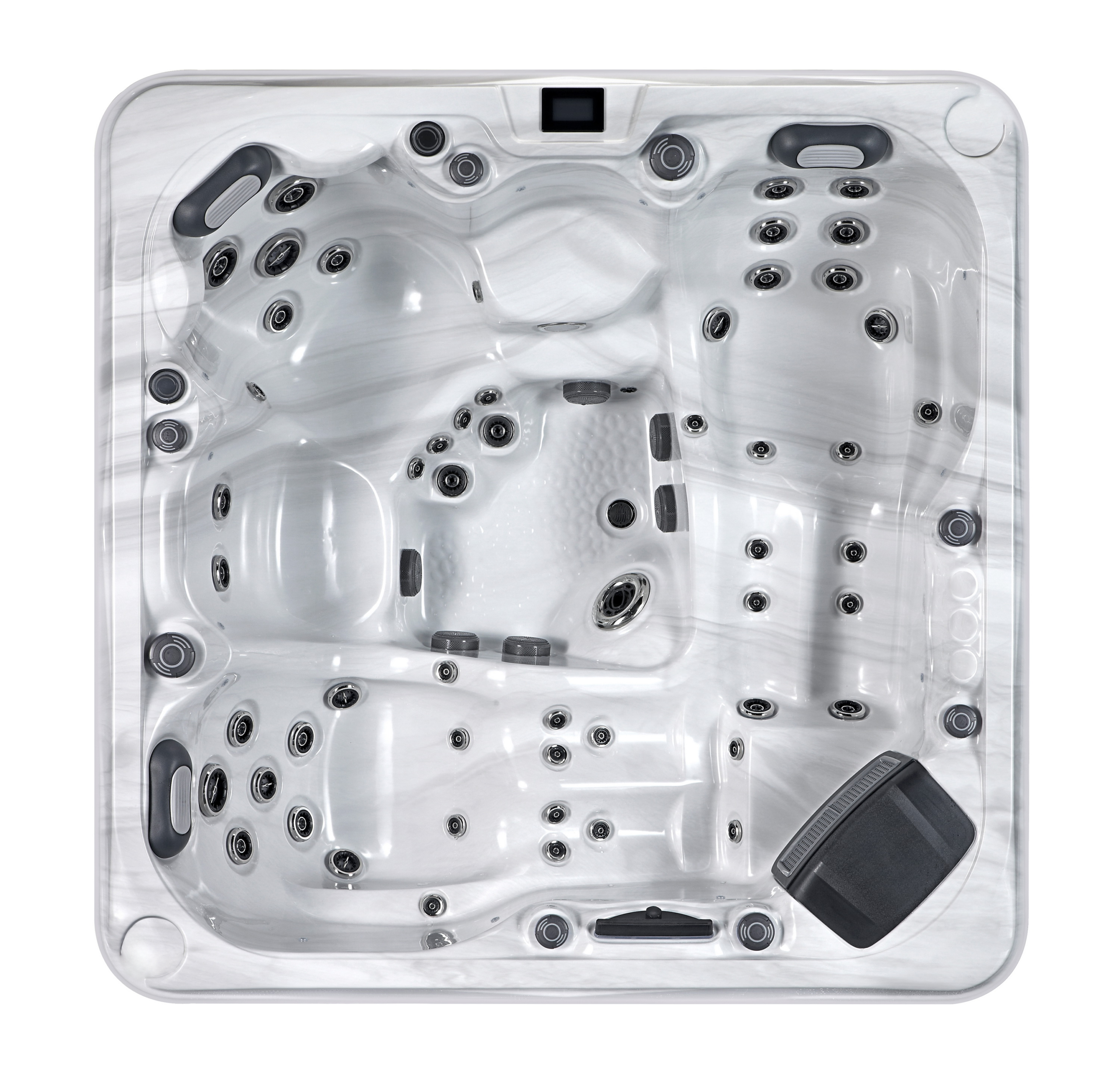 Usagés Côte thermale Dimension : 91 x 91 Sièges : 6 assise 49 Jets 1 Fontaine d’eau 2 pompes ( 2 vitesses ) En savoir plus